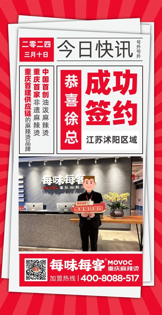 感谢徐总信任 成功签约【江苏沭阳】区域门店 每味每客·重庆麻辣烫 中国首创油泼麻辣烫 重庆首家非遗麻辣烫 重庆首建供应链的麻辣烫品牌