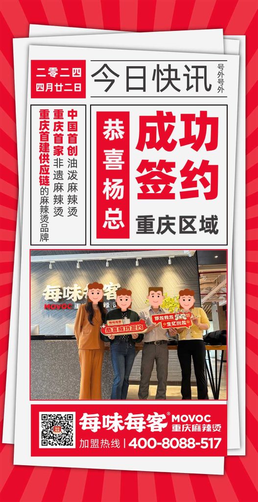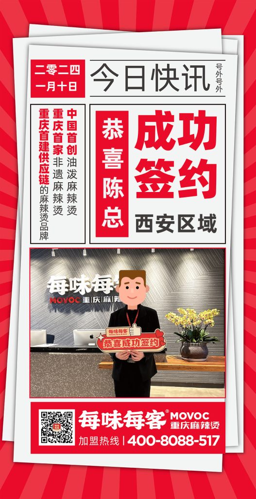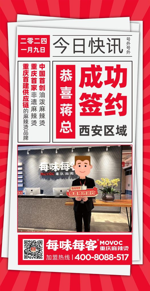 感谢陈总信任,成功签约【西安】区域门店 每味每客·重庆麻辣烫 中国首创油泼麻辣烫 重庆首家非遗麻辣烫 重庆首建供应链的麻辣烫品牌